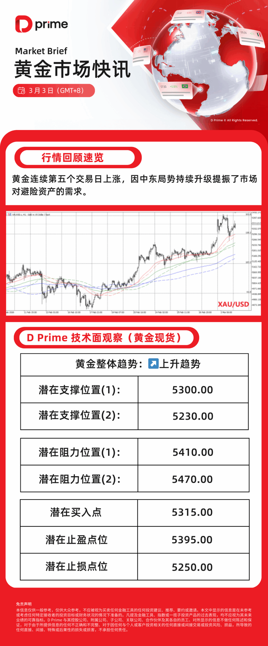 D Prime 黄金市场快讯 | 2026 年 3 月 5 日