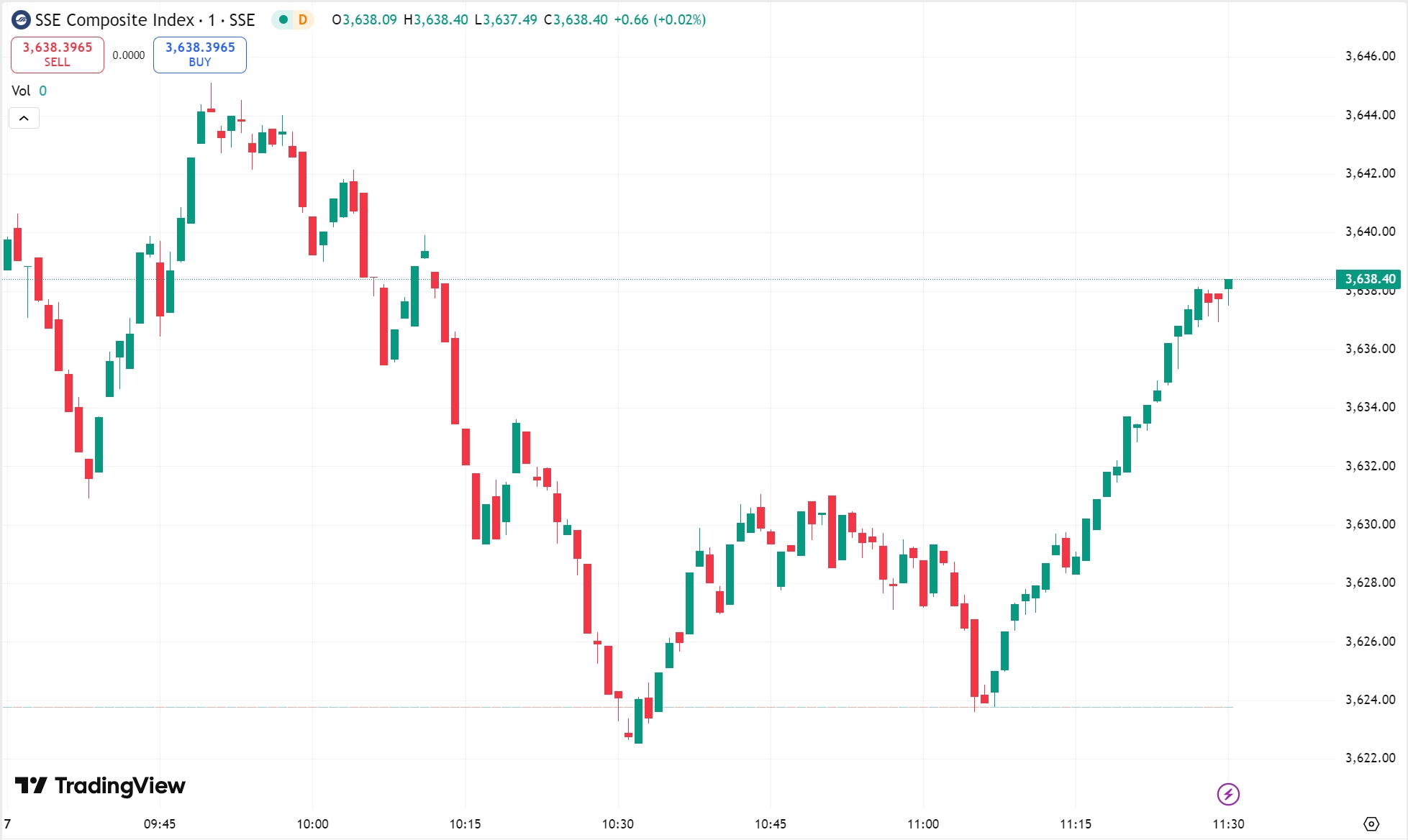 • 沪指涨 0.12%,报 3,638.40 点