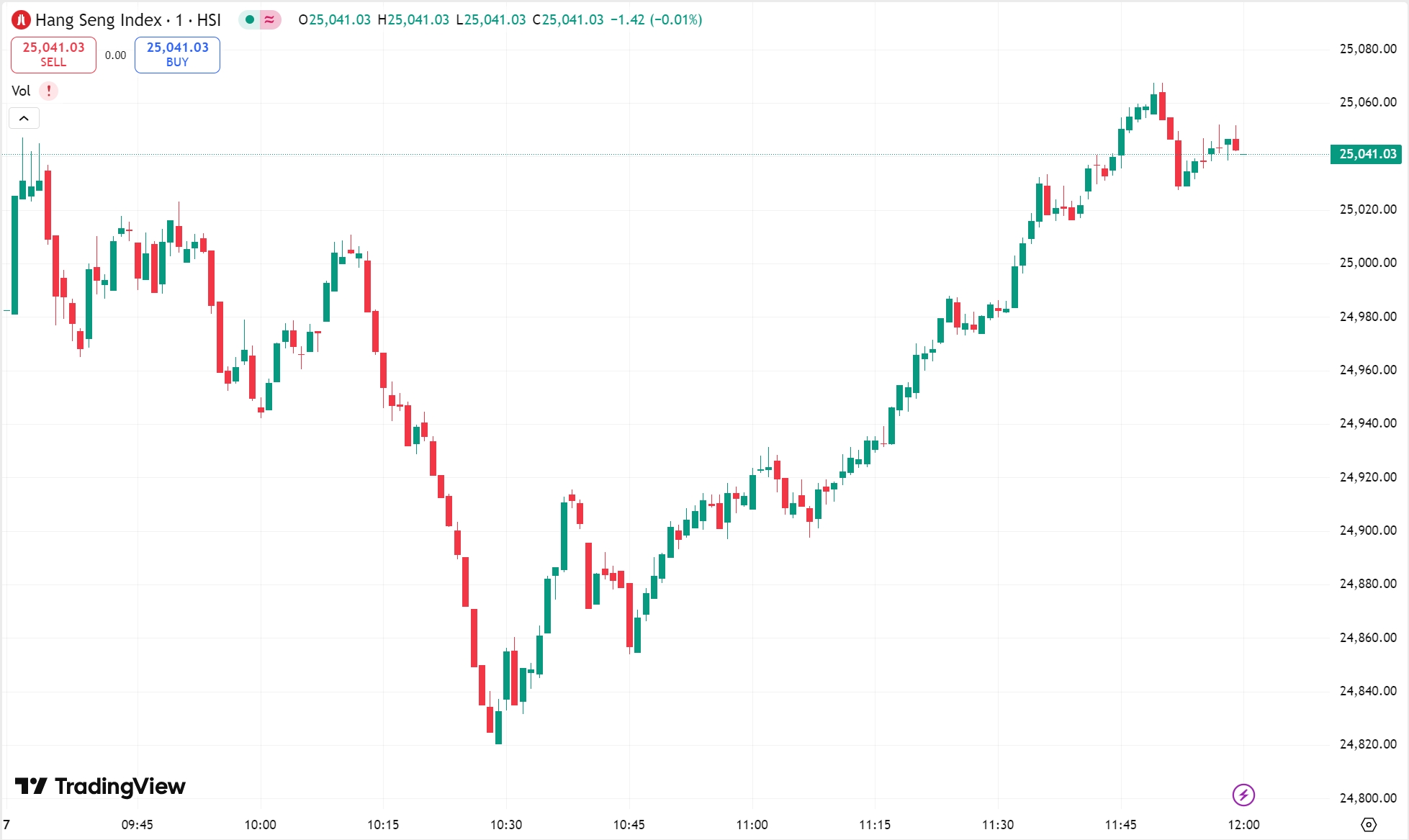 • 恒生指数涨 0.52%,收报 25,041.03 点