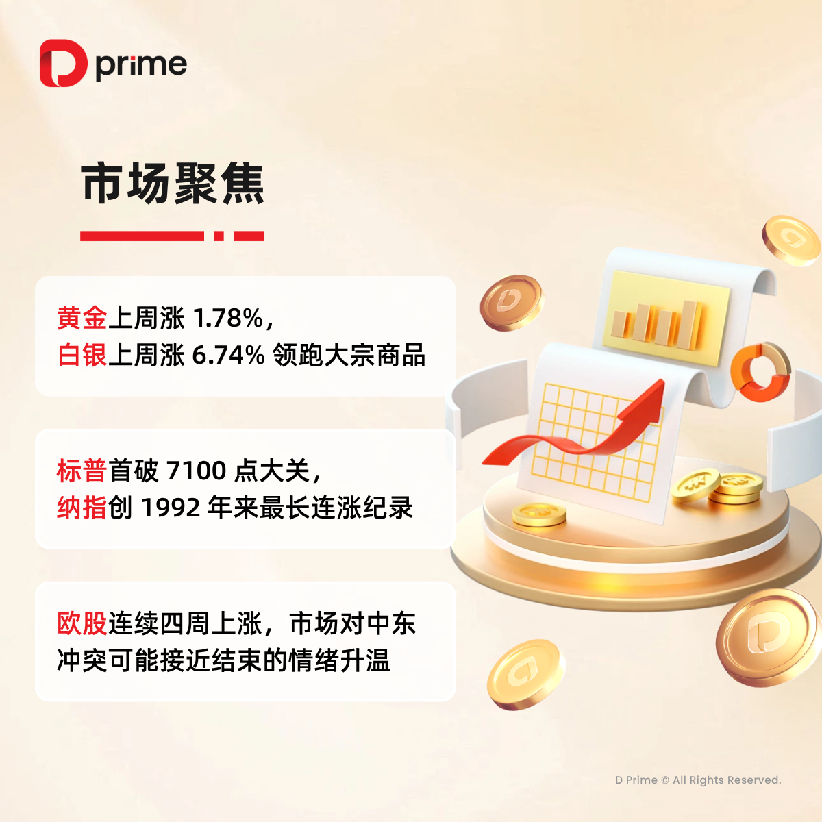 精选研报 | 上周五,标普首破 7100 点大关,纳指创 1992 年来最长连涨纪录,地缘政治局势的急剧缓和为全球市场注入强心针。摩根大通分析师表示,能源价格的剧烈回落将显著减轻第二季度的通胀压力。 还有哪些大事值得关注?下方图片速览: