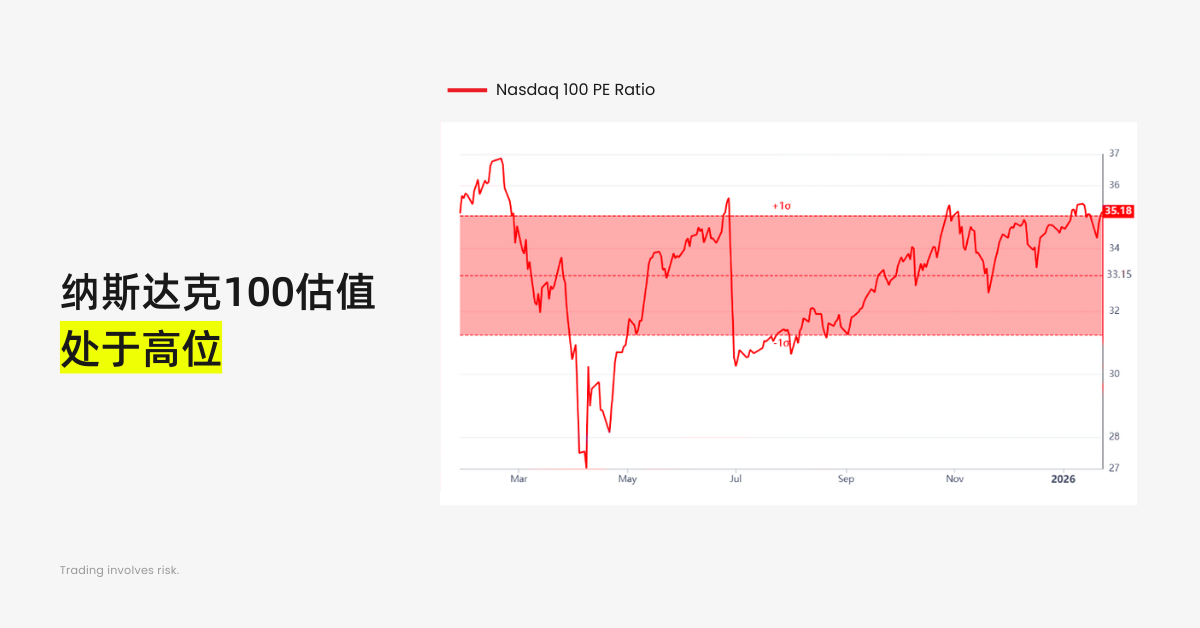 首先还是价值投资的长期标的——美股。现在 Nasdaq 100 指数的 PE 高达 35.18 倍,处于高位。美国股市依然强劲,哪怕特朗普扬言出兵格陵兰、给欧洲加税,都阻挡不了股市的涨势。