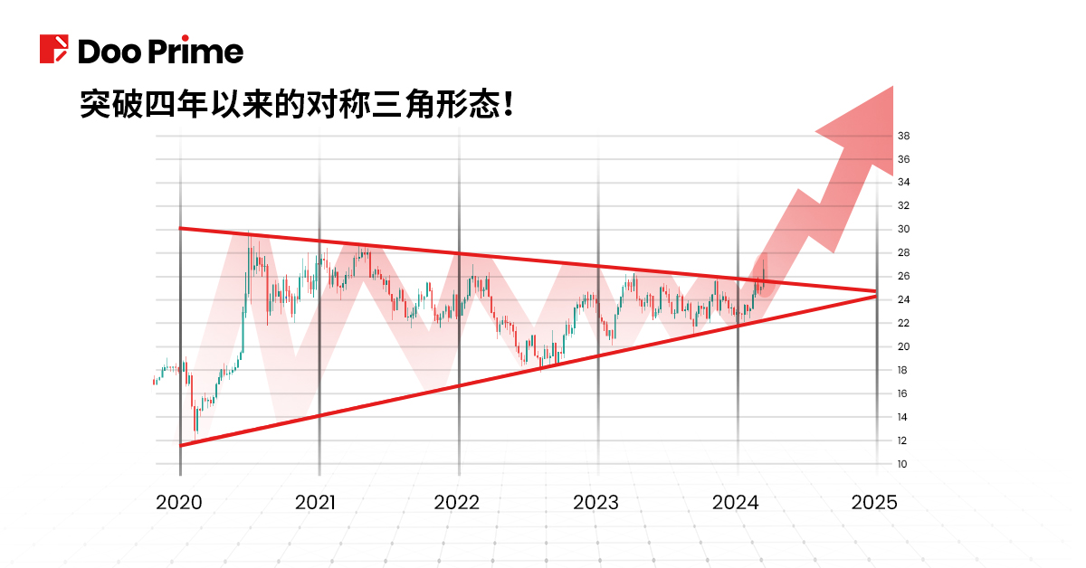 尽管存在这些风险,白银的长期前景仍然乐观。自 2020 年以来,白银价格的整固形成了一个长达 4 年的对称三角形形态,现在更出现看涨突破。