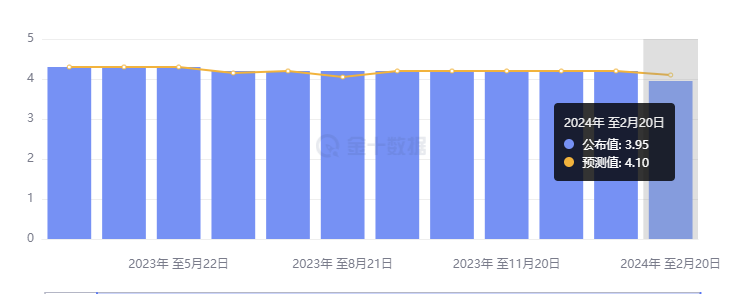中国人民银行授权全国银行间同业拆借中心公布 2024 年 2 月 20 日贷款市场报价利率(LPR)。