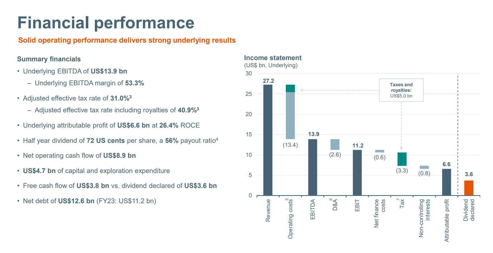 全球最大的矿业公司必和必拓公布了截至 2023 年 12 月 31 日的半年业绩,营收为 272.32 亿美元,同比增长 6%;然而,其净利润较上年同期下滑 86% 至 9.72 亿美元。必和必拓将支付每股 72 美分的中期股息,低于前六个月的 90 美分。