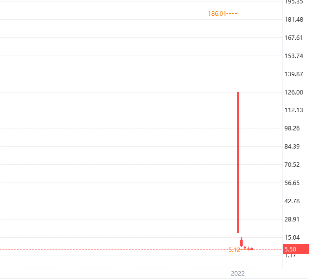 随后的几个交易日,该股持续下跌,截至 9 月 1 日收盘已回落至 5.5 美元/股,较上市首日 186.01 美元的最高价,已下跌 97%。