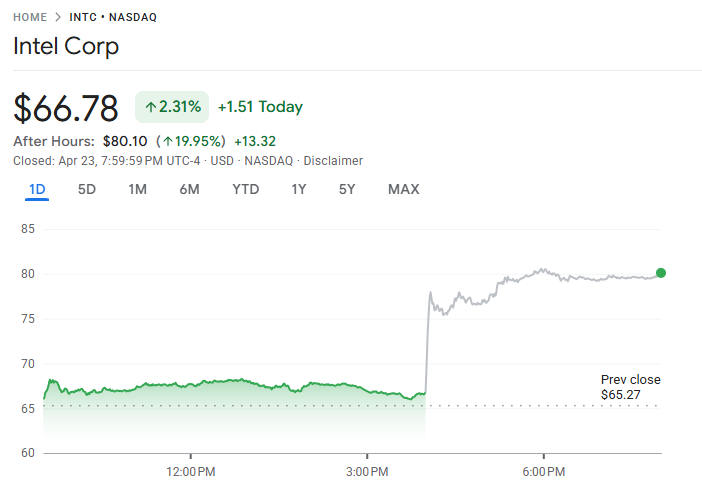 展望二季度,Intel 预计营收将在 138 亿至 148 亿美元之间,高于市场预期的 130.4 亿美元。