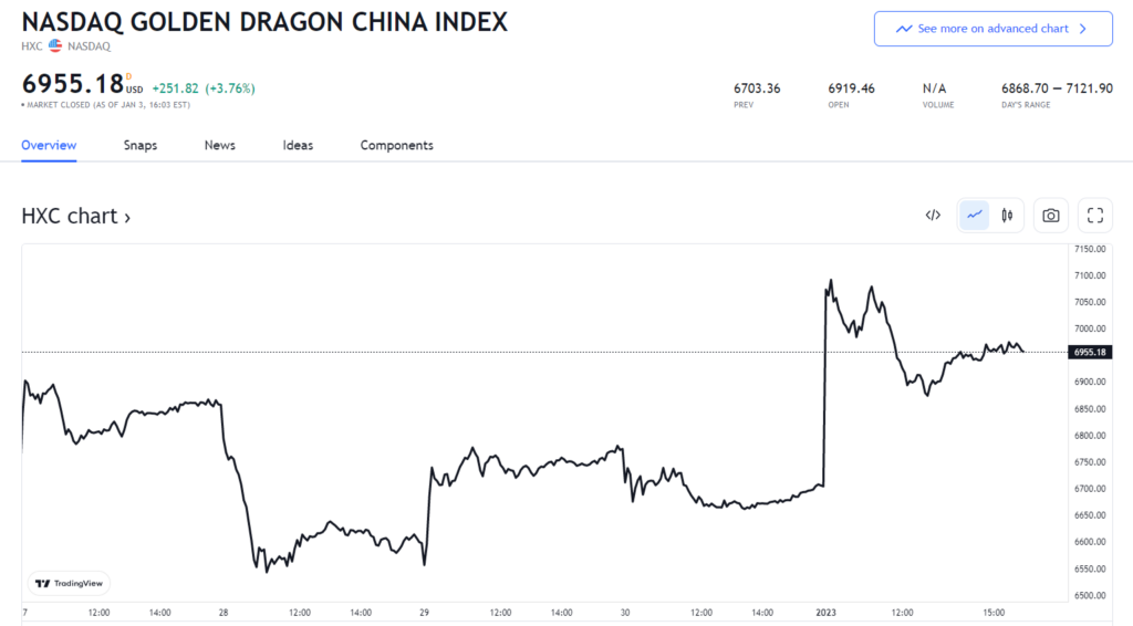 中概股、港股表现强势,然而美股走弱。2023 年第一天交易日,美股一度集体高开,但开盘半小时后,美国三大股指悉数转跌。