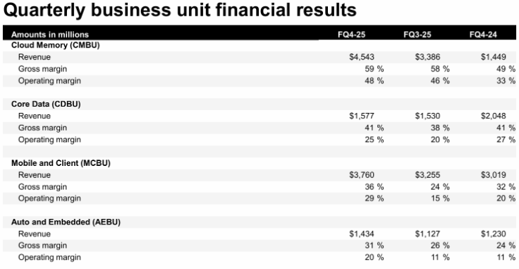 公司表示,业绩增长主要受益于 数据中心营收创新高,以及各终端市场对 DRAM 产品需求旺盛、价格表现坚挺。展望下一季度,美光提供的指引继续 超出分析师平均预期,显示增长动能仍在延续。不过,受市场消化影响,其股价盘后仅小幅上涨约 1%。