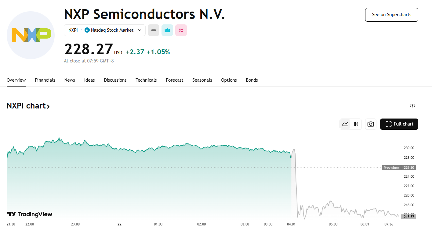 恩智浦半导体(NXPI)公布 2025 年第二季度财报,营收为 29.3 亿美元,同比下降 6.4%,但依然高于市场预期的 29 亿美元;每股收益(EPS)为 2.72 美元,同样优于预期的 2.68 美元。