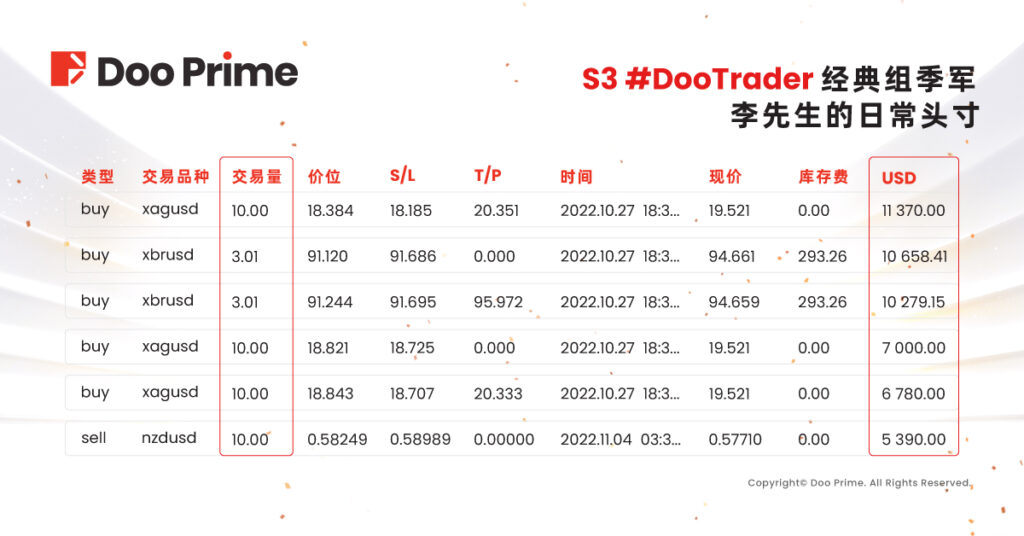 S3 #DooTrader 经典组季军李先生的日常头寸