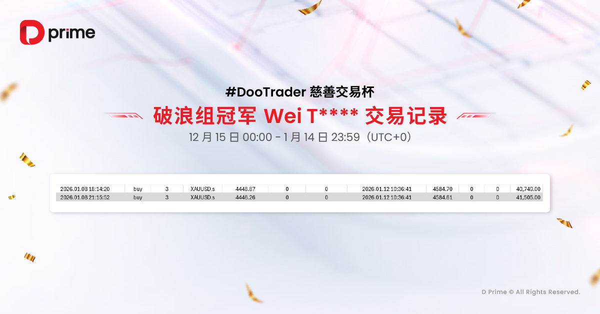 每当您在比赛中完成 1 手交易,D Prime 都将代表您捐出 0.1 美元,帮助改善贫困儿童的教育条件,让您的每一笔交易助力点亮更多孩子的未来。