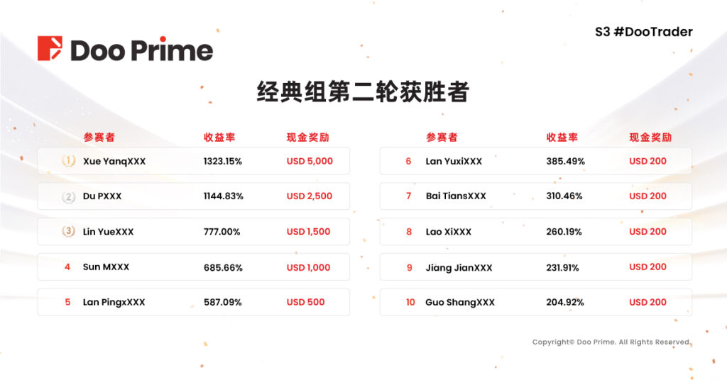如果您错过了今年的比赛也不必遗憾,让我们共同期盼明年新一届大赛的到来,相信 Doo Prime 定会带来更加完备的赛事和丰富的奖励,一起携手创造新的交易奇迹。此外,Doo Prime 将陆续推出 S3 #DooTrader 交易大赛优秀选手专访实录,让各位投资高手在线分享致胜秘籍,精彩继续,敬请期待!