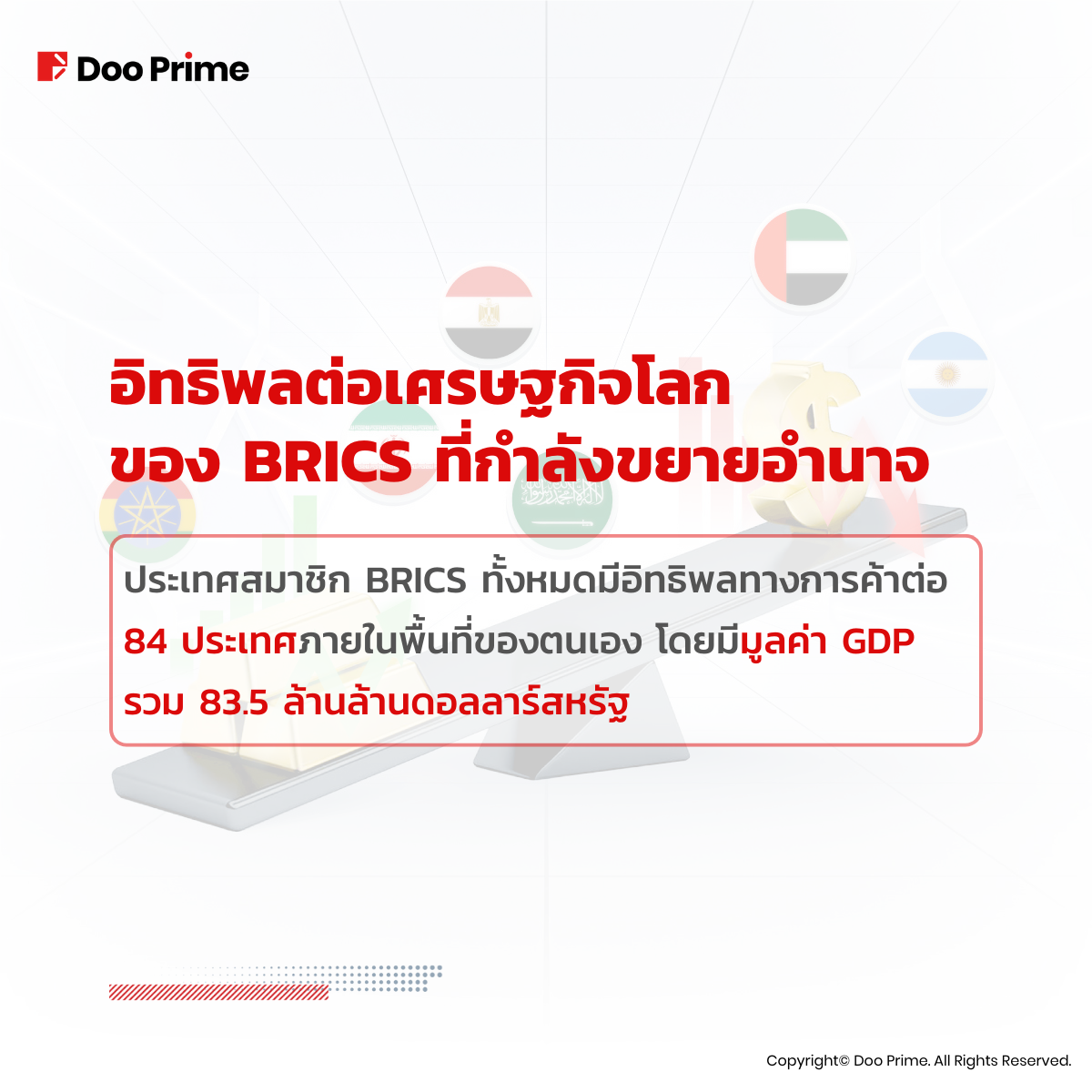ในบทความนี้ เราจะศึกษาอิทธิพลที่สมาชิก BRICS ใหม่ ทั้ง 6 ประเทศ ซึ่งเป็นสิ่งที่นักลงทุนจำนวนมากมองข้าม และสุดท้าย และอภิปรายผลกระทบต่อเงินดอลลาร์สหรัฐ ทองคำ และดุลอำนาจทั่วโลกอย่างไร