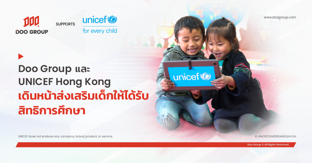 การขยายความร่วมมือระหว่าง Doo Group และองค์กร UNICEF Hong Kong ถือเป็นอีกก้าวสำคัญก้าวใหม่ในการส่งเสริมศักยภาพเด็กด้อยโอกาส ด้วยความร่วมมือของ Doo Group กับ UNICEF Hong Kong เรามุ่งมั่นที่จะสร้างความสำเร็จที่ยิ่งใหญ่มากกว่าเดิมในอนาคต