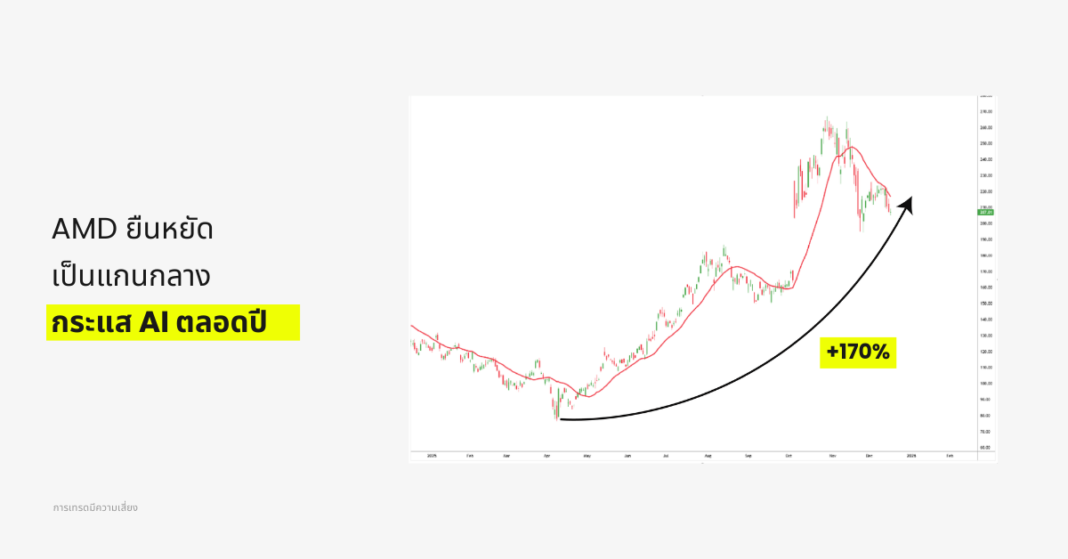 AMD ได้เปรียบจากการวางตำแหน่งในตลาดศูนย์ข้อมูล (Data Centers) อีกทั้งยังมี AI และคอมพิวเตอร์ประสิทธิภาพสูง แม้ว่าการแข่งขันในตลาดชิปจะดุเดือด แต่ AMD ก็สามารถรักษาความเกี่ยวข้องในกระแส AI ได้ และหลีกเลี่ยงการแกว่งตัวของความเชื่อมั่นอย่างรุนแรงที่เห็นในหุ้นเก็งกำไรอื่นๆ3 อันดับหุ้นที่ขาดทุนสูงสุดในปี 2025 (The Losers)