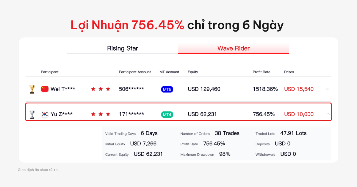 Yu Zaishek, một nhà giao dịch đến từ Hàn Quốc, xếp thứ hai ở Vòng 6 – Nhóm Wave Breaker, chỉ đứng sau Wei Tengfei.
