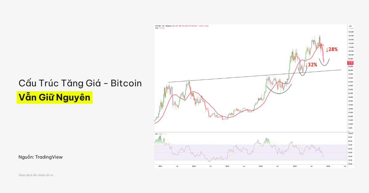 Và trong thị trường tiền điện tử, các nhịp điều chỉnh từ 20-35% là bình thường, ngay cả trong giai đoạn tăng giá mạnh.