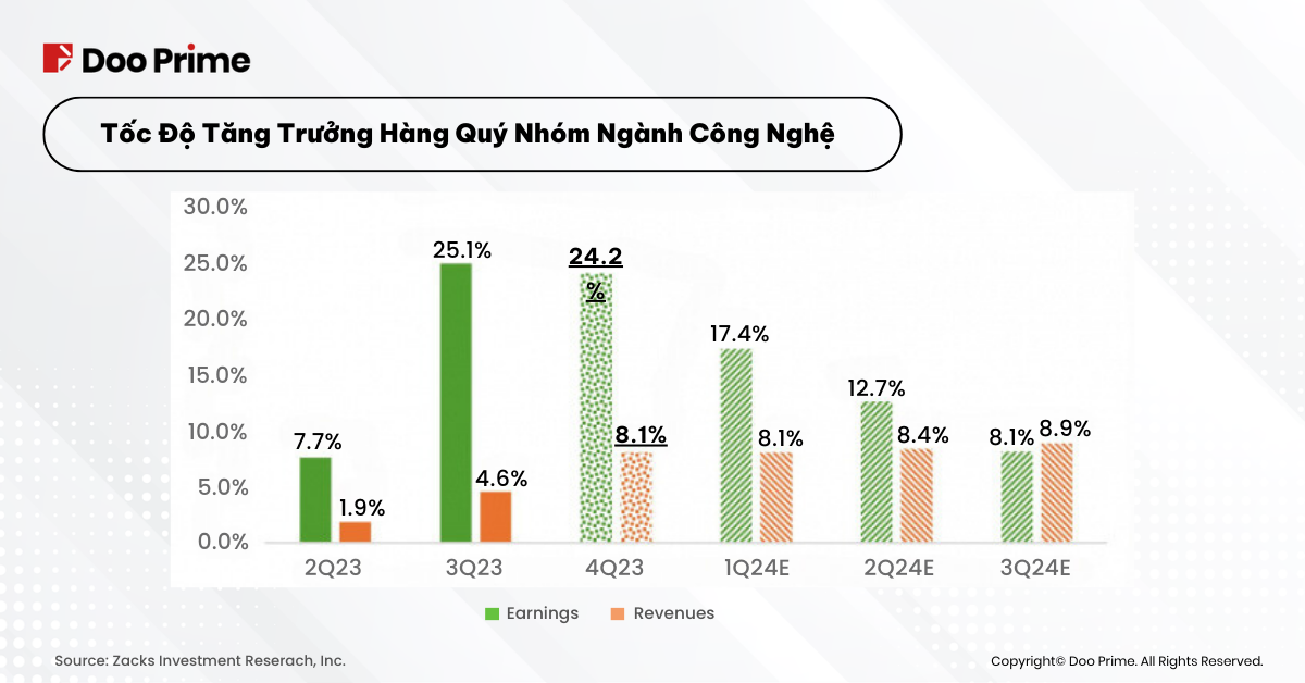 Ngoài những ông lớn này, toàn bộ lĩnh vực công nghệ dự kiến sẽ chứng kiến thu nhập quý 4 tăng +24,2% so với cùng kỳ năm ngoái, với doanh thu tăng +8,1%.